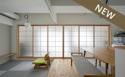 100平米のマンションリノベ。 コンクリートと和の質感を 現代風にアレンジ。
